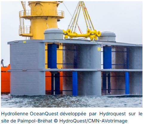 Le déploiement des fermes pilotes FloWatt (HydroQuest et Qair) et NH1 (Normandie Hydroliennes) dans le Raz Blanchard propulsera l’hydrolien vers la phase d’industrialisation. Ces projets ont obtenu au total 51 M€ de financements européens via l’Innovation Fund. De plus, le projet Flowatt bénéficiera de 75 M€ de subventions et avances remboursables dans le cadre de France 2030. Le soutien de l’Etat français et de l’Union Européenne permettra ainsi l’installation de 10 hydroliennes pour une puissance totale de près de 30 MW au large du Cotentin. Ce passage à l’échelle permettra de mettre en place une chaîne de valeur complète pour la filière hydrolienne marine française pour préparer le premier appel d’offres commercial de 250 MW attribué à l’horizon 2030.
