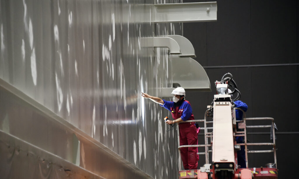 Chantiers de l’Atlantique investit près de 100 M€ d’ici à la fin de la décennie dans le développement, sur son site à Saint-Nazaire, de ses capacités industrielles nécessaires à la réalisation de ses projets EMR. Cet investissement, soutenu à hauteur de 20 à 25 M€ par le C3IV, a par exemple récemment permis d’augmenter la capacité des alvéoles de peinture de l’entreprise, pré-requis notamment nécessaire à la réalisation de nouvelles plateformes de conversion en courant continu.8